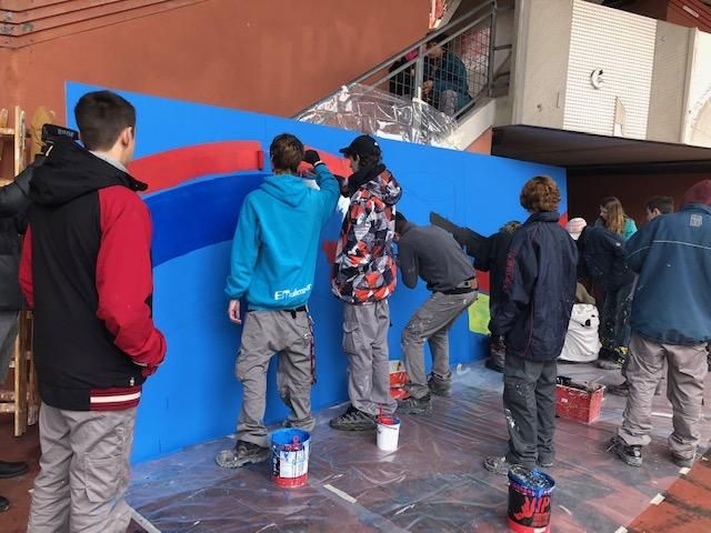 L’Europeo Under 21 a Trieste comincia con sei mesi d’anticipo: gli alunni di Edilmaster, la scuola edile iscritta al programma della Figc e del Miur #tifiamoEuropa, hanno dipinto un murale allo stadio Nereo Rocco. Gli allievi della scuola edile hanno immaginato un’unica bandiera formata dalle quattro bandiere delle nazionali che giocheranno a Trieste il prossimo giugno - Germania, Austria, Serbia, Danimarca - e poi hanno scritto le parole benvenuti, rispetto, integrazione e solidarietà in tutte le lingue dei quattro Paesi. L’opera, che misura 6 metri per 2, decorerà in modo permanente lo stadio di Trieste nell’ambito del progetto Chromopolis. Mentre dipingevano, i ragazzi hanno avuto una sorpresa: la visita di una delegazione dell’Alma Pallacanestro Trieste. il capitano dell’Alma, Andrea Coronica, ha detto di essere molto fiero del lavoro dei suoi concittandini e ha promesso che sarà allo stadio per gli Europei assieme ai suoi compagni di squadra. Anche Donatella Rocco, anima di Chromopolis e nipote del grande Nereo, ha raccontato ai giovani artisti la sua emozione per l’evento che avrà come teatro anche lo stadio intitolato al suo amatissimo nonno.