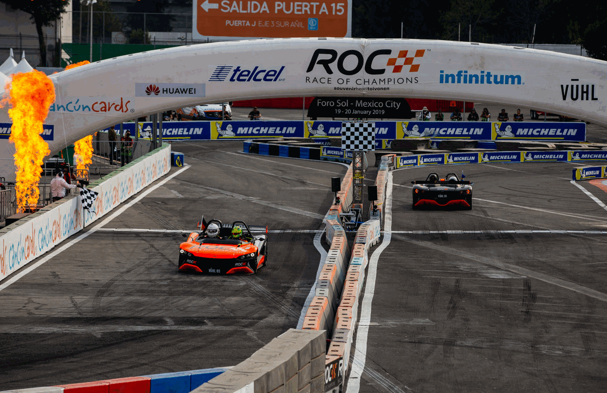 Sebastian Vettel e Mick Schumacher è una coppia che fa già sognare la Ferrari. Poche ore dopo l'ufficialità del passaggio del figlio 19enne di Michael nella Driver Academy della scuderia di Maranello, i due hanno dato spettacolo a Città del Messico arrivando secondi nella classica Race of Champions. A vincere sono stati Tom Kristensen, nove volte vincitore della 24 Ore di LeMans, e Johan Kristofferson, campione del mondo rallycross, che hanno portato il Team Nordic sul gradino più alto del podio. La sfida finale con il Team Germany è stata decisa dal danese Kristensen che al volante della KTM X-Bow ha regolato Schumi Jr. di otto decimi nel mini circuito allestito nella parte dello stadio dell'Austodromo Hermanos Rodriguez. (foto raceofchampions.com)
