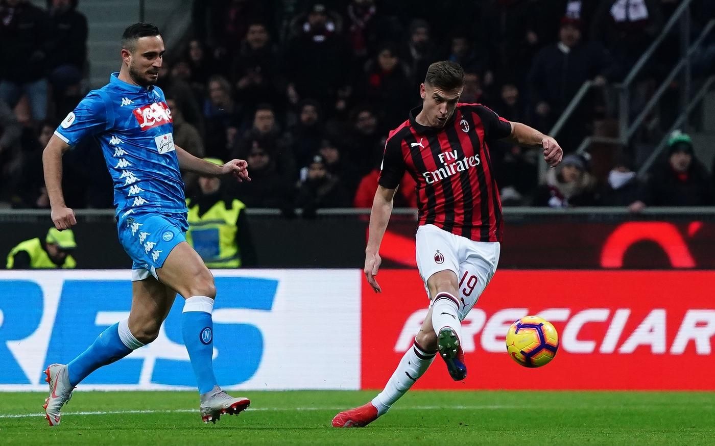 Nel primo quarto di finale di Coppa Italia, il Milan supera il Napoli ed è la prima semifinalista. A San Siro finisce 2-0 per la squadra di Gattuso, che viene trascinata da uno scatenato Piatek. I partenopei vengono infatti eliminati dalla doppietta del nuovo centravanti rossonero, che sblocca il risultato all'11' e poi trova il bis con un super gol al 27'. Il Milan affronterà ora la vincente di Inter-Lazio.