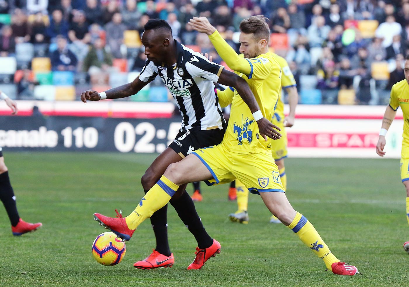 Nella 24a giornata di Serie A, l'Udinese batte 1-0 il Chievo e conquista 3 punti fondamentali per la salvezza. Inizio spumeggiante (Depaoli si divora il vantaggio di testa, Nuytinck colpisce il palo da 35 metri), poi poche emozioni. Nel finale l'episodio che la decide: Djordjevic tira una gomitata a Pussetto e Valeri assegna il rigore con il Var. Teodorczyk si fa ipnotizzare da Sorrentino, ma non sbaglia sulla ribattuta. Clivensi quasi spacciati.