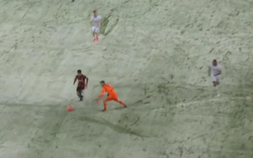 Episodio ai limiti dell'incredibile durante la gara tra Hannover e Bayer Leverkusen. Intorno alla mezz'ora del primo tempo, con gli ospiti avanti 2-0, i padroni di casa avrebbero la possibilità di accorciare le distanze, ma il tiro a botta sicura dell'attaccante, che aveva saltato il portiere, viene fermato dalla neve accumulatasi in prossimità della linea di porta.