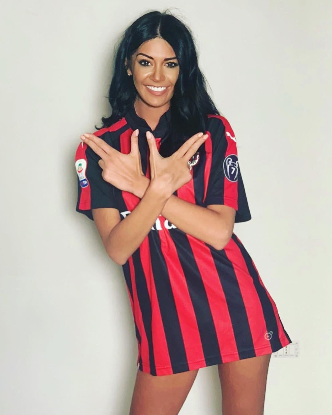 Il derby non è andato per il verso giusto per il Milan anche se in tribuna c'era il sorriso di Andreea Tolomeiu. La modella romena, grande tifosa rossonera, ha consolato i tifosi con due foto con la maglia di Piatek e compagni.