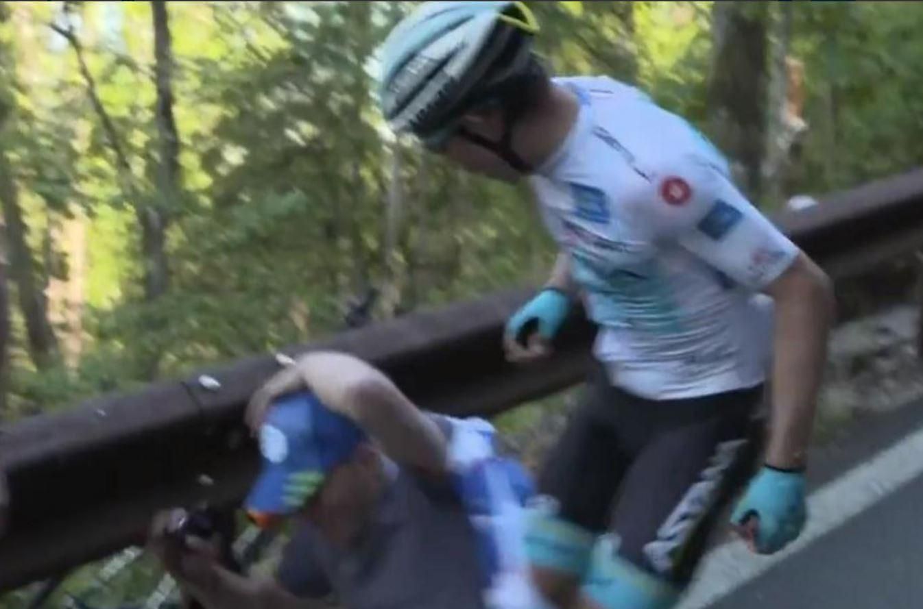 Giro d'Italia: un tifoso lo fa cadere, Lopez lo prende a schiaffi