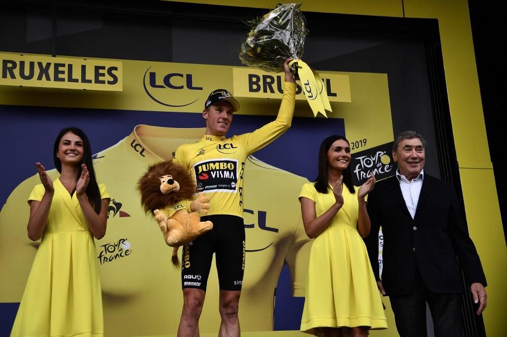 La prima maglia gialla del Tour de France 2019 va a Mike Teunissen, che vince un'incredibile volata sul traguardo di Bruxelles battendo al fotofinish Peter Sagan. A seguire Caleb Ewan e due italiani, Giacomo Nizzolo e Sonny Colbrelli. Tappa molto complessa e piena di episodi, a partire dalla foratura occorsa a Elia Viviani e a diverse cadute, che coinvolgono tra gli altri Fuglsang e, nell'infuocato finale, Groenewegen.