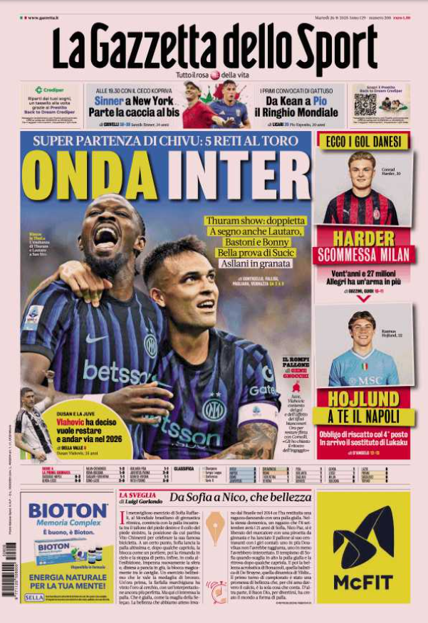 I giornali: martedì 26 agosto 2025