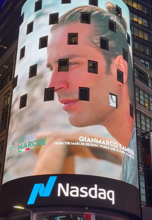 "Dalla costa adriatica a Times Square. L’emozione nel vedere il nostro spot, lo spot della nostra magnifica regione, negli schermi più importanti di New York, è veramente indescrivibile... avere la possibilità di essere il volto che racconta le bellezze di questa fantastica terra...Non ho parole! Siamo a Time Square, incredibile!! Felice ed orgoglioso di essere marchigiano, felice ed orgoglioso di poter raccontare le Marche in tutto il mondo". Queste le parole con cui Gianmarco Tamberi ha celebrato lo spot della regione Marche a New York, con il campione di salto in alto testimonial d'eccezione apparso su un enorme grattacielo.