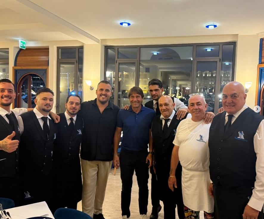 "È venuto a trovarci il grande mister Antonio Conte campione in carica e vincitore dello scudetto con il nostro amato". Così un noto ristorante di Napoli ha postato sui social una foto con il tecnico azzurro che durante la sosta di campionato si è concesso una serata in riva al mare