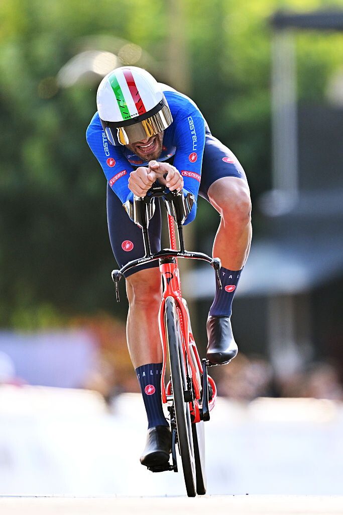 Filippo Ganna ha conquistato la medaglia d'argento nella cronometro elite agli Europei di ciclismo in corso in Francia. Il campione azzurro si è dovuto inchinare solo all'attuale dominatore della specialità, il belga Remco Evenepoel, che dopo l'oro ai Mondiali in Ruanda si è ripetuto anche a livello continentale. Evenepoel ha chiuso la sua prova col tempo di 28'26'', alla media di 50.63 kmh, precedendo Ganna di 43 secondi. La medaglia d'argento è andata al danese Niklas Larsen, staccato di 68 secondi. In gara per l'Italia c'era anche Lorenzo Milesi, che ha chiuso oltre il decimo posto.