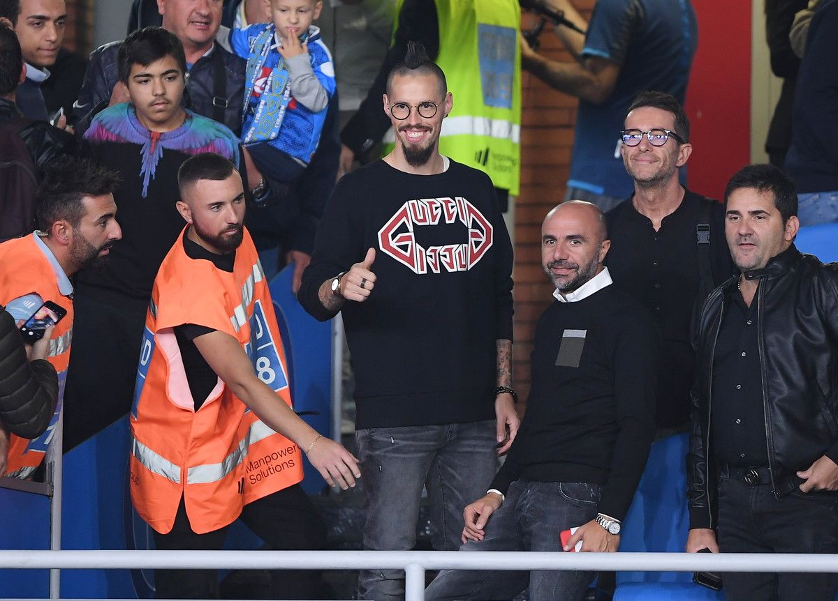 "Testa alta, cresta al vento, l'azzurro addosso con fiero portamento. Orgoglio, appartenenza e maglia sudata. Marek e Napoli, una storia d'amore che verrà raccontata". E' questo il testo di un enorme striscione apparso nella Curva B dello stadio San Paolo di Napoli dedicato all'ex capitano Marek Hamsik presente in tribuna per la partita con l'Atalanta. La prima da quando a febbraio si è trasferito a giocare in Cina. Hamsik è stato accolto da un'ovazione dei tifosi allo stadio quando è stato inquadrato dal sui maxischermi. Nel celebrare la sua presenza, lo speaker del San Paolo ha annunciato che il 10 dicembre, nella serata del match di Champions League contro il Genk, ci sarà un evento in suo onore.