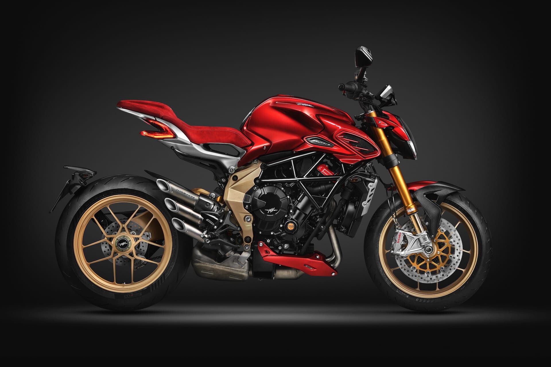 La nuova MV Agusta Brutale Serie Oro 2025 ridefinisce il concetto di naked di media cilindrata, unendo tecnologia all’avanguardia, prestazioni entusiasmanti e l’eleganza del design italiano. Sviluppata secondo la filosofia “Beyond Performance”, la naked di Schiranna offre molto più di potenza e velocità: rappresenta un’esperienza di guida completa e appagante, dove ogni dettaglio è studiato per esaltare il pilota. I quattro pilastri su cui si fonda la nuova Brutale sono Design, Prestazioni, Guidabilità e Affidabilità. Il design rimane fedele all’iconica estetica Brutale, evoluta con un look contemporaneo e un faro full LED matrix con funzione cornering. Il nuovo motore 950 EVO, derivato dall’unità della Enduro Veloce ma completamente rivisto, eroga 148 CV a 11.200 giri/min e 107 Nm di coppia, con un’erogazione fluida e corposa. Telaio e geometrie ottimizzati migliorano la maneggevolezza, mentre le sospensioni Öhlins e i freni Brembo Hypure assicurano controllo e prestazioni di livello superiore. Ogni componente racconta la ricerca di eccellenza MV Agusta: scarico Termignoni in titanio, materiali di pregio e una garanzia di 5 anni che sancisce un nuovo standard di affidabilità. Un’icona rinata per chi vive la moto come arte e passione.