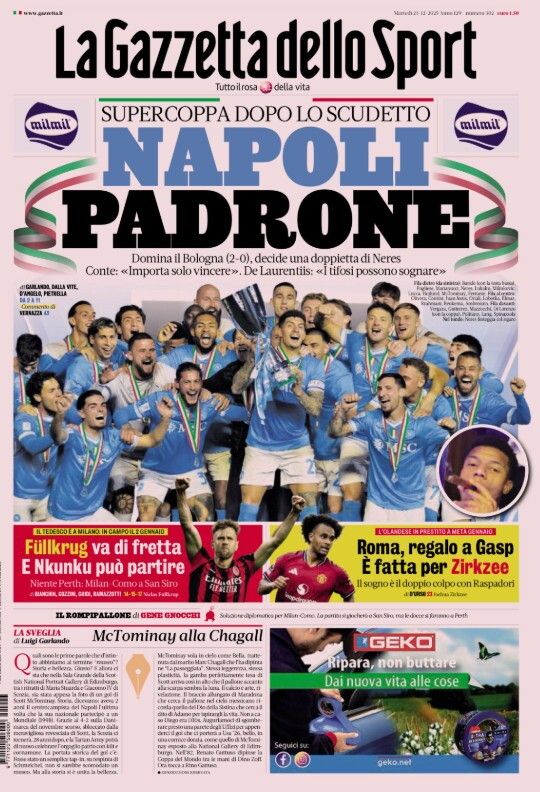 I giornali sportivi: martedì 23 dicembre 2025