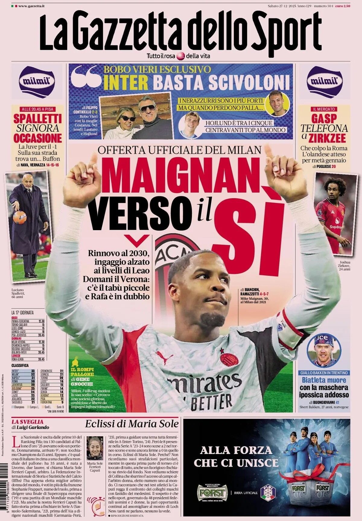 I giornali sportivi: sabato 27 dicembre 2025