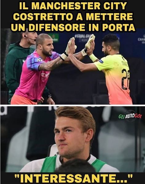Il Manchester City ha dovuto giocare l'ultimo quarto d'ora del match di Champions League contro l'Atalanta con Walker in difesa: con Ederson sostituito durante il match da Bravo e la successiva espulsione del cileno, Guardiola non aveva altri portieri in panchina. Ecco i migliori meme trovati sul web.