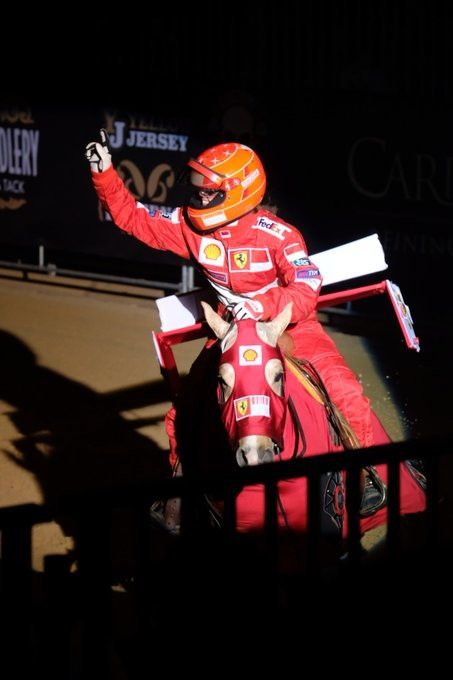 Gina maria Schumacher, 22enne figlia del campionissimo Michael, ha emozionato la folla di Fieracavalli a Verona, partecipando alla gara di freestyle in costume con una coreografia a tema Ferrari., Gina Maria ha indossato tuta rossa, casco e un costume ad hoc per il suo cavallo, e ha simulato un vero e proprio pit stop, aiutata per il “cambio gomme” da otto meccanici. Da Brividi.