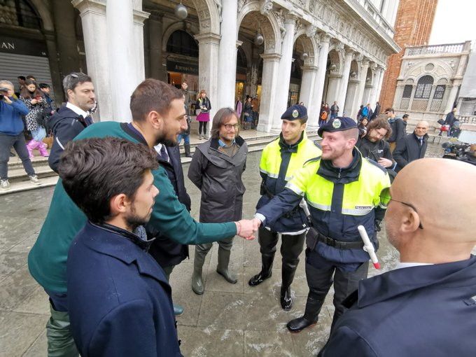 "Venezia supererà anche questa. Come un atleta che subisce un grave infortunio e poi si rialza". C'è commozione e solidarietà nella parole di Gianluca Vialli, capodelegazione della nazionale di calcio, in visita a San Marco con il presidente della Figc, Gabriele Gravina, e il portiere della Nazionale, Gianluigi Donnarumma. La delegazione azzurra ha fatto visita alla piazza colpita dall'acqua alta eccezionale, in particolare ad un paio di negozi storici ancora allagati, fermandosi a parlare con i titolari, e gli uomini della polizia locale, della protezione civile e con i carabinieri. "Sappiamo di avere una grande responsabilità attraverso la nostra presenza, per portare sostegno portare solidarietà, e cercare di ispirare le persone in questo momento difficile e delicato", ha anche aggiunto Vialli, presente in piazza San Marco con la delegazione della Figc. "Venezia è una città ferita, ma è forte oltre ad essere stupenda, ed ha dimostrato un grande carattere e una capacità di rialzarsi straordinaria", ha detto il presidente della Figc, Gabriele Gravina. "La nostra presenza con tutta la Nazionale è un messaggio di affetto e testimonianza alla città - ha aggiunto il numero 1 della Federcalcio - ai suoi cittadini e a coloro che si stanno adoperando per riportare questa tragica situazione alla normalità".