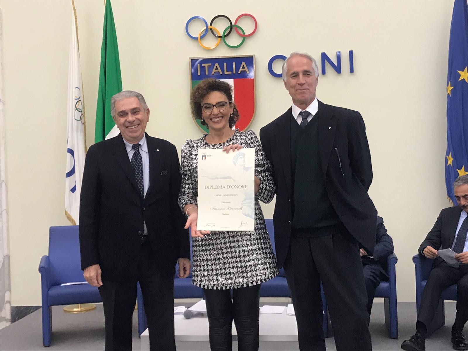 A Roma, nella Sala d'Onore del Coni, Francesca Benvenuti, classe 1972 e professionista da 18 anni, ha ritirato il premio USSI-CONI 2019 nella categoria TV conferitole lo scorso 28 ottobre. Un giusto riconoscimento che premia il lavoro ricco di professionalità e passione della giornalista di SportMediaset. Per la nostra testata ha seguito anche Olimpiadi estive e Mondiali di Calcio, compreso l'ultimo in Russia, trasmesso in esclusiva dalle reti Mediaset. Per il nostro gruppo, è il nono premio ottenuto e arriva dopo quelli di: Lucia Blini (2018), Alberto Brandi (2016), Nicola Calathopoulos (2011), Sandro Piccinini (1998), Alberto D'Aguanno (1995), Bruno Longhi (1993), Gigi Garanzini (1987) e Rino Tommasi (1985).