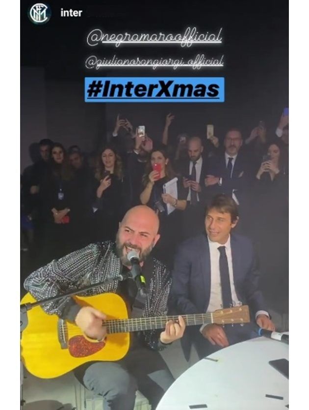 Serata in grande stile in casa Inter per la consueta festa di Natale dei nerazzurri, che si sono scambiati gli auguri. Presenti alla serata il numero uno della società, Steven Zhang, la dirigenza, l'allenatore Antonio Conte, tutti i giocatori, le calciatrici dell'Inter Women e tanti ospiti, tra cui Giuliano dei Negramaro, che ha fatto esibire il tecnico (suo conterraneo) in una canzone.