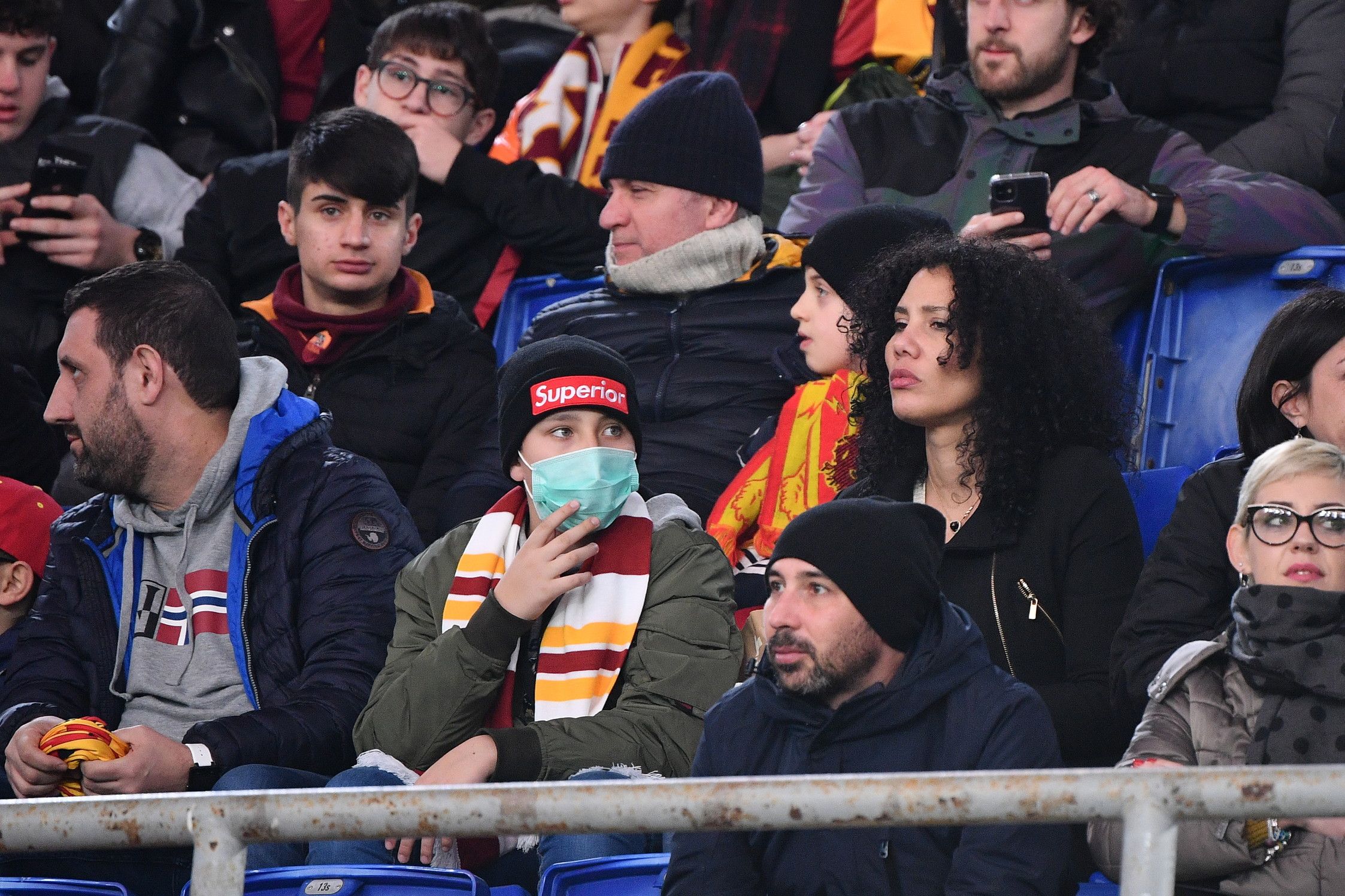 Roma-Lecce: tifosi all'Olimpico con la mascherina per il coronavirus