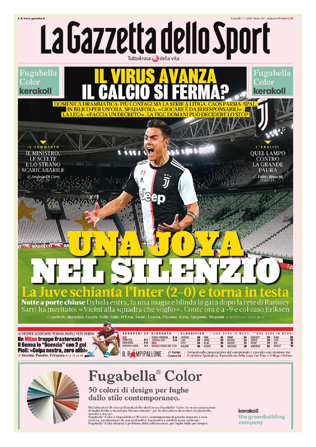 La Panini ha realizzato altre 3 figurine extra della raccolta “Calciatori 2019-2020”, un’edizione che secondo tanti collezionisti potrebbe essere molto ricercata nei prossimi anni proprio per il particolare periodo storico a cui fa riferimento. Queste figurine sono destinate a completare il “Film del Campionato”, la sezione speciale dell’album che dà spazio ai protagonisti e ai momenti salienti della stagione. La prima figurina celebra la vittoria della Juventus contro l’Inter, nella partita dello scorso 8 marzo svoltasi a porte chiuse a Torino in uno stadio vuoto. Un’altra figurina è invece dedicata all’Atalanta come “fabbrica del gol”, mentre l’ultima al centrocampista biancoceleste Luis Alberto come “re degli assist".