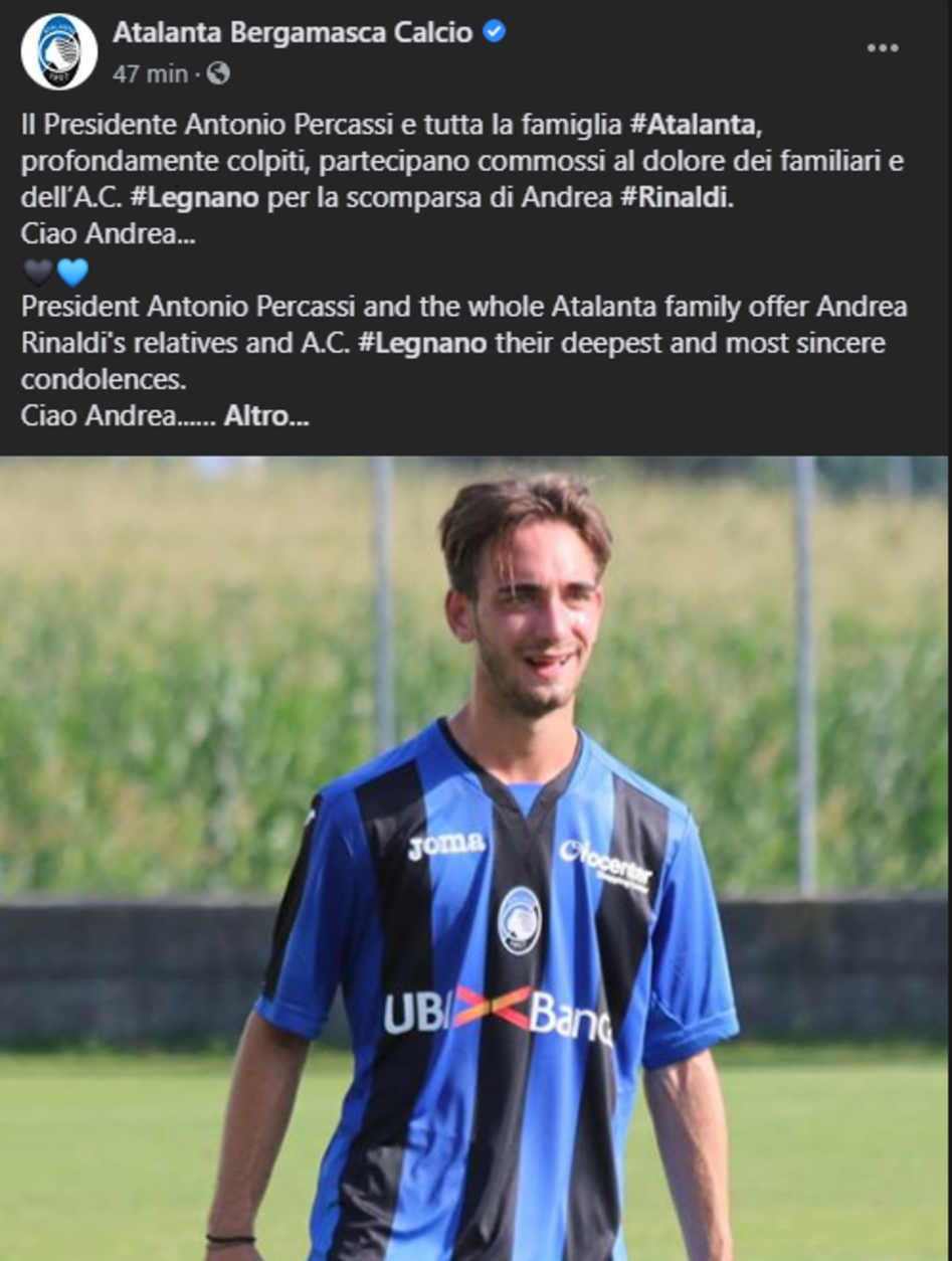 Morte Andrea Rinaldi, il cordoglio dello sport