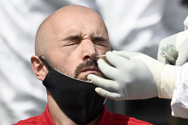 Il Kosovo, che il 14 marzo aveva stoppato gli eventi sportivi, si appresta a ricominciare anche con il calcio: arbitro, assistenti e staff medico in queste foto vengono sottoposti a tampone direttamente sul campo, nello stadio Fadil Vokrri di Pristina.