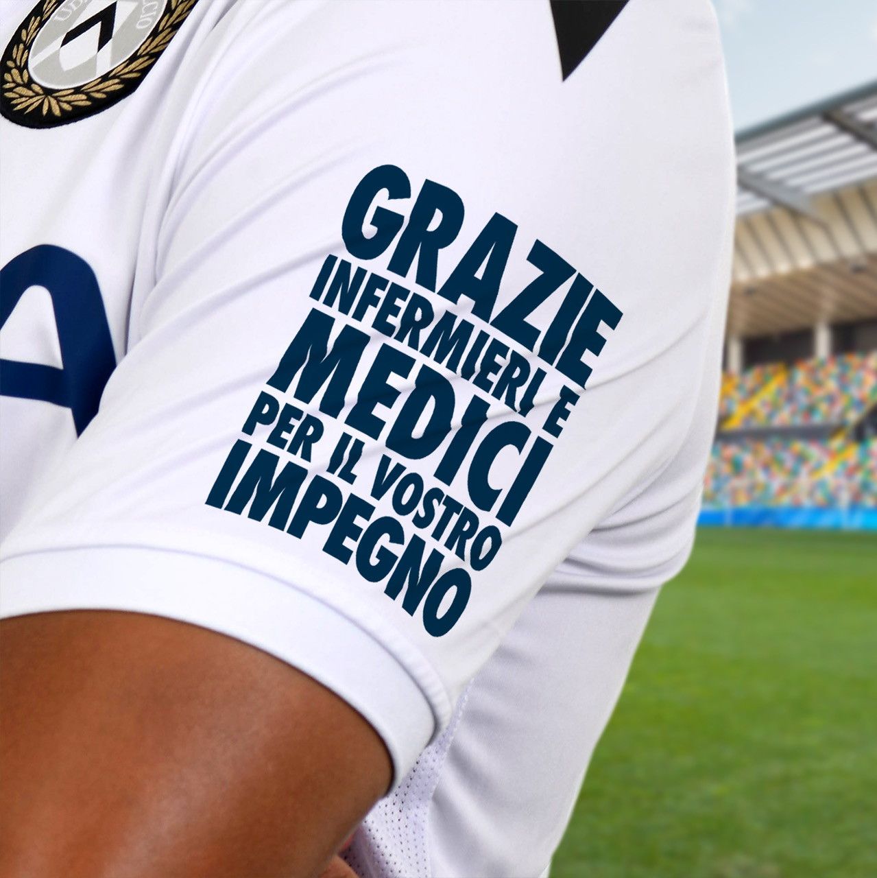 L’Udinese in campo contro l’Atalanta con una maglia dedicata agli operatori sanitari per l’impegno profuso durante l’emergenza coronavirus: "In occasione del primo match da disputare alla Dacia Arena dalla ripresa del campionato, Udinese Calcio vuole omaggiare chi ha combattuto, in prima linea, il Covid-19. Il club, dunque, ha scelto di dedicare un’apposita patch, applicata sulle maglie utilizzate nella gara contro l’Atalanta, su cui compare la scritta: 'Grazie infermieri e medici per il vostro impegno'. Un gesto simbolico e, al tempo stesso, emblematico per dimostrare la gratitudine di tutta la famiglia bianconera ai tutto il personale sanitario per l’abnegazione, la professionalità e l’autentica vocazione per la propria missione dimostrata in questi tempi duri. Contestualmente, sui led a bordocampo, Udinese Calcio e il suoi tifosi omaggeranno anche i tifosi dell’Atalanta e tutta la popolazione bergamasca duramente colpita dal virus, un modo per dimostrare vicinanza e dare l’incoraggiamento ad una città intera che ha sofferto e che, adesso, rinasce anche attraverso il calcio", si legge nella nota ufficiale del club friulano.