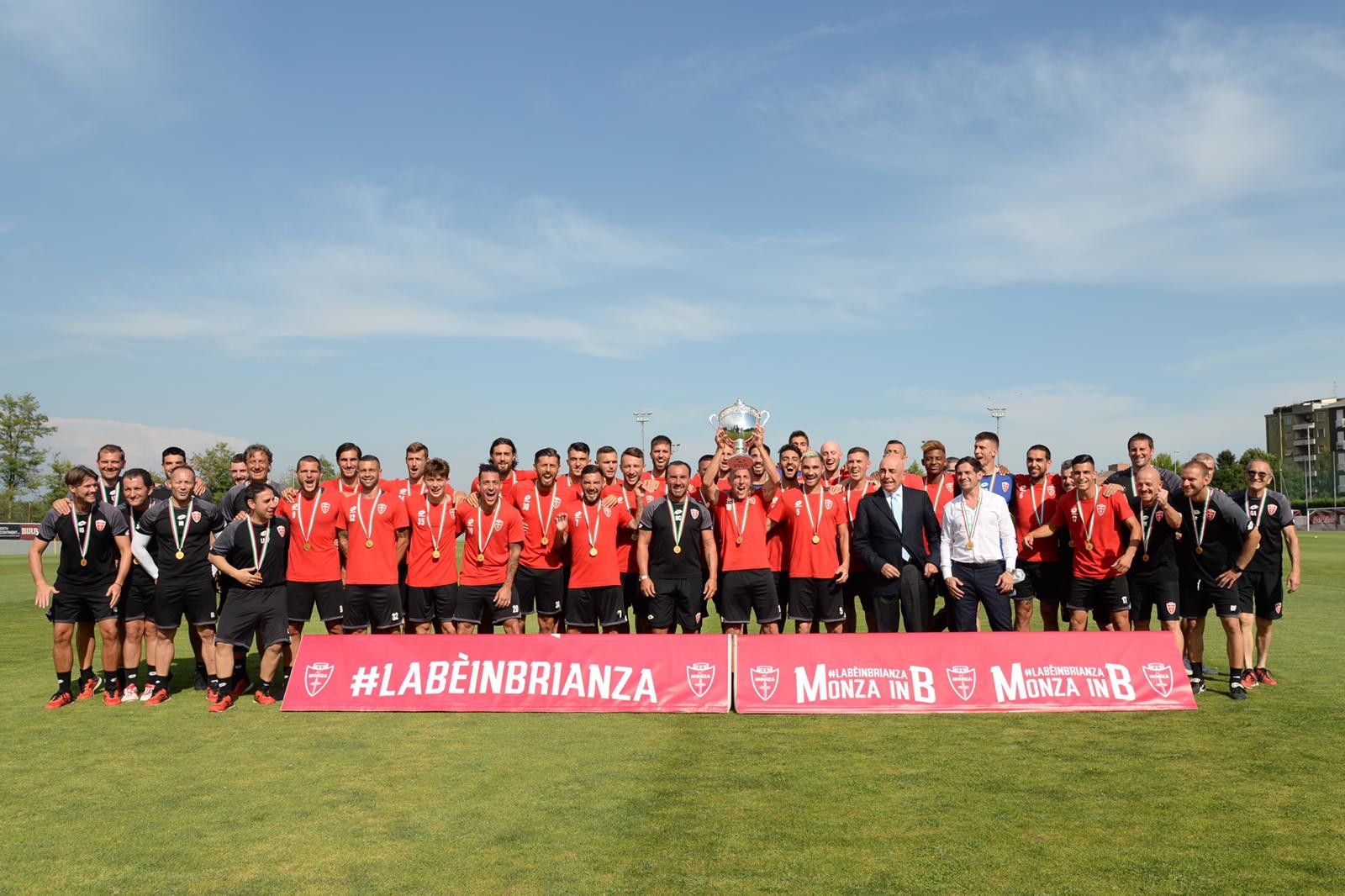 Festa in casa Monza con la squadra biancorossa premiata per la conquista del Girone A di Lega Pro. A Monzello, l'amministratore delegato Adriano Galliani ha consegnato il trofeo al capitano e le medaglie a giocatori e staff tecnico per la vittoria con 16 punti di vantaggio sulla seconda. Dopo il rito della consegna e i sorrisi dei protagonisti, l'inno della società brianzola prima di tornare ad allenarsi per preparare al meglio la stagione in Serie B.