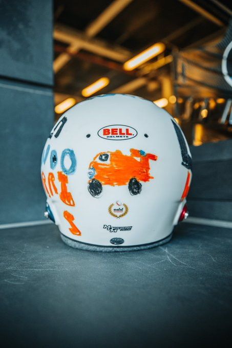 A SILVERSTONE Norris in pista con il casco disegnato da una bambina