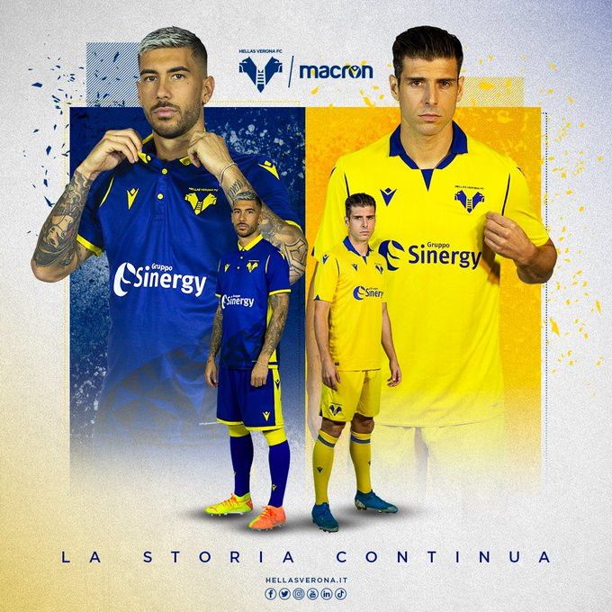 Hellas Verona FC e Macron, technical sponsor del club, hanno presentato i kit home e away che i gialloblù indosseranno per la stagione 2020/21 in Serie A TIM, Coppa Italia e amichevoli, a partire dal ritiro di #ValGardena2020. I colori dei nuovi kit rappresentano una scelta di continuità con le ultime stagioni, mantenendosi fedeli alla storia dell’Hellas Verona. Tante però anche le novità, a partire dal nuovo logo che da questa stagione accompagna il club in un processo di rebranding che mantiene centrale il tema della tradizione e del rispetto della storia della più antica squadra della città. Tutti i capi della nuova collezione dell’Hellas Verona hanno una vestibilità Slim Fit, il tessuto principale è Softlock e la presenza di inserti in micromesh assicura la traspirabilità.“
