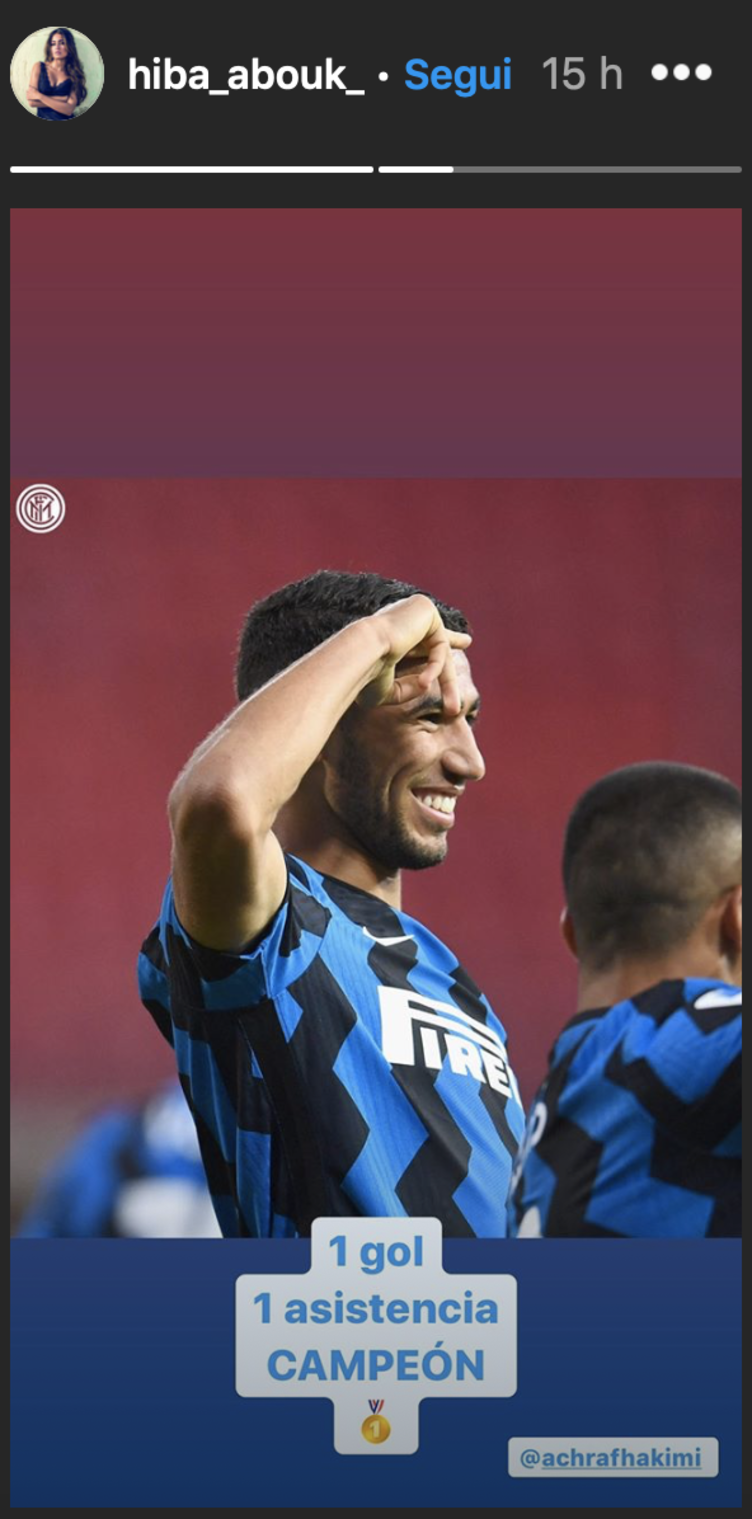 Alla prima da titolare in Serie A, Achraf Hakimi ha sfoderato una prestazione devastante contro il Benevento: e dopo la gara anche la sua compagna, Hiba Abouk, ha esultato sui social postando questa storia: “Un gol e un assist: campione”. Hiba, nata a Madrid ma di origini tunisine, è un'attrice famosa in Spagna per aver recitato in numerose serie tv iberiche ed è 12 anni più grande dell'esterno dell'Inter.