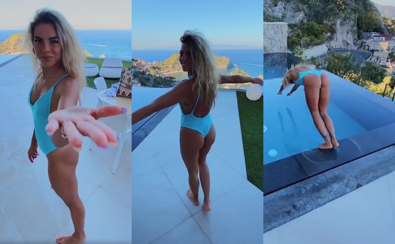 Giulia Amodio, fidanzata di Stefano Sensi, saluta l'estate su Instagram con un pazzesco tuffo in piscina: sia per la location, sia per le forme della compagna del centrocampista dell'Inter.
