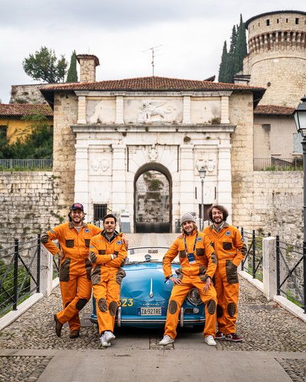 La 1000 Miglia è da sempre una delle corse con più fascino al mondo e per farla ci vuole anche stile. Così Pantamolle, dei fratelli Francesco e Piergiacomo Sigalini, ha personalizzato la Jumpsuit di Garage Italia in una collaborazione unica. Un outfit veramente stiloso per l'equipaggio della Porsche 356 Speedster del 1955 numero 323. Foto di Andrea Luzardi.