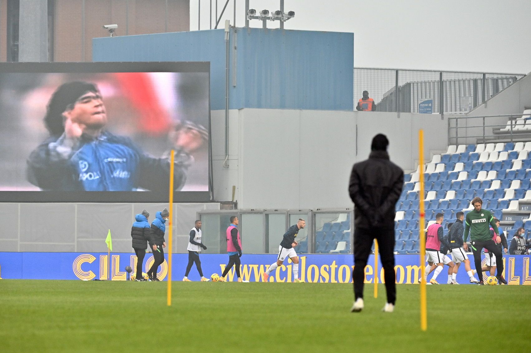 Sassuolo-Inter apre la 9a giornata di Serie A, la prima da quando è morto Diego Armando Maradona. Sullo schermo del Mapei Stadium sono state proiettate le immagini della leggenda del calcio, a cui è stato tributato un minuto di silenzio prima del via del match (e sarà così in tutti gli stadi di Serie A e B). Al 10° minuto (come il suo numero di maglia), ove possibile, le squadre - tutte con il lutto al braccio - si fermeranno in suo onore.