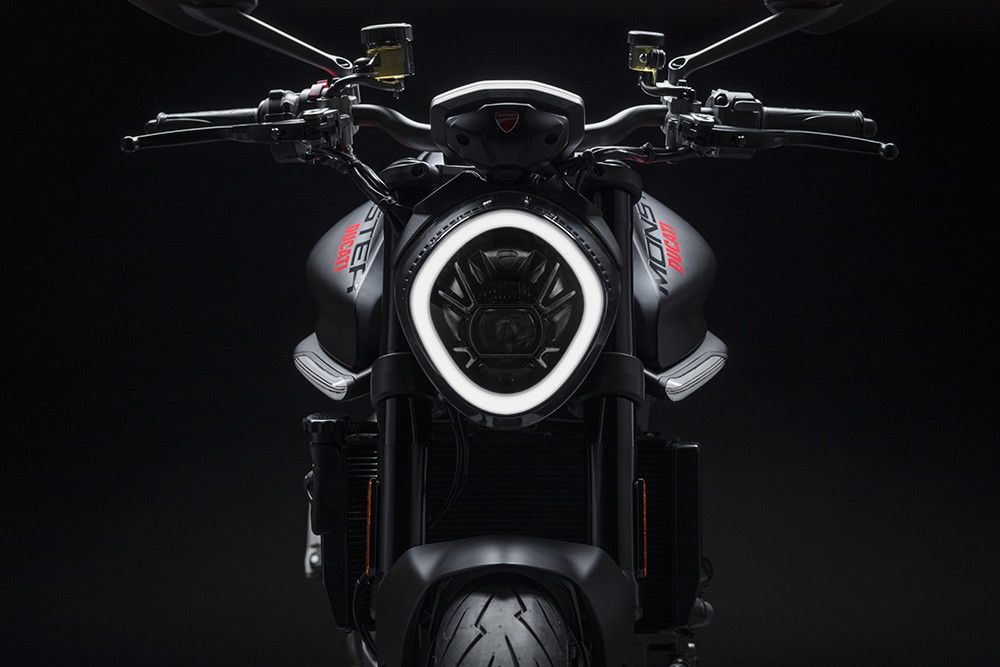 Il nuovo Monster rappresenta tutta l’essenza Ducati nella forma più compatta, essenziale e leggera possibile. Per realizzare il nuovo Monster progettisti e designer sono ripartiti da zero, avendo però chiari i punti cardine attorno a cui la nuova moto doveva essere costruita. Snella e agile, la moto riprende le linee guida del DNA di ogni Monster: serbatoio a “dorso di bisonte”, faro tondo “incassato nelle spalle”, coda pulita e motore al centro della scena. Il linguaggio però è nuovo e moderno. Le forme sono evolute in una direzione in cui essenzialità e tecnologia sono esaltate dal design, come nel profilo circolare del proiettore anteriore a LED o negli indicatori di direzione “sweeping”. Il Monster monta il motore Testastretta 11° da 937 cc bicilindrico a L, con distribuzione desmodromica e omologato Euro 5. Rispetto al precedente 821 cresce in cilindrata, potenza, coppia e cala nel peso (-2,4 kg) per contribuire alla leggerezza della moto e offrire migliore guidabilità. Ora eroga 111 CV a 9.250 giri/minuto con una coppia massima di 9,5 Nm erogata a soli 6.500 giri/minuto, dimostrandosi efficiente e reattivo nella risposta al gas. Grazie alla maggiorazione della cilindrata la coppia è migliorata a tutti i regimi, in particolare a quelli medio bassi, ovvero quelli più utilizzati normalmente su strada e tra le curve. Questo garantisce performance entusiasmanti oltre a facilità e piacere di guida, supportati anche dal nuovo cambio e dal Ducati Quick Shift Up/Down montato di serie. Il Monster è disponibile anche in versione da 35 kW, per i possessori di patente A2. Il nuovo Monster è disponibile nei colori Rosso Ducati e Dark Stealth con ruote nere, Aviator Grey con ruote Rosso GP. Per chi volesse la moto con un’immagine ancora più sportiva è presente negli stessi colori la versione Plus con il cupolino aerodinamico e la cover per la sella del passeggero di serie. Il Monster sarà disponibile nei concessionari Ducati a partire da aprile 2021.