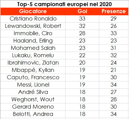 Calcio 1 di 12 2 di 12 3 di 12 4 di 12 5 di 12 6 di 12 7 di 12 8 di 12 9 di 12 10 di 12 11 di 12 12 di 12 © Opta Ronaldo super bomber in Italia e in Europa, Calhanoglu re degli assist in Serie A 1 di 12 2 di 12 3 di 12 4 di 12 5 di 12 6 di 12 7 di 12 8 di 12 9 di 12 10 di 12 11 di 12 12 di 12 Avvia slideshow © Opta I NUMERI DEL 2020 Ronaldo super bomber in Italia e in Europa, Calhanoglu re degli assist in Serie A I numeri dei protagonisti del 2020. Dati opta 30 dic 2020 - 07:59 12 foto ronaldo 2020 lewandowski immobile lukaku ibrahimovic MY DACIA ROAD 2025 My Dacia Road, tra avventura e off road Ultimi video Milan, rientro decisivo: nel derby torna Pulisic Spalletti verso Firenze: "Facciamo vedere di essere gente da Juve" Spalletti parla della Nazionale: "Italia? Abbiamo una squadra molto forte" Verso Fiorentina-Juventus All'assalto del Mondiale: il cammino dell'Italia Napoli a rapporto da Conte verso l'Atalanta Dybala, il countdown: quando ritorna in campo Per la Fiorentina è "la gara": arriva la Juventus Juve, stai attenta al pericolo ex: da Kean a Fagioli Verso Milan-Inter: le voci dei tifosi, come finirà? Inter-Milan arbitra Sozza: il derby a un milanese Marotta lancia l'Inter ma "teme" Allegri Dybala: "Forse non tutti sanno che ho praticato altri sport" Nedved: "Raggiungere la Coppa del Mondo dopo 20 anni" Gattuso: "Paura di nessuno. Fare di tutto per giocare il Mondiale" I più visti di Calcio Alisha Lehmann, svaligiata (di nuovo) la casa: "La prossima volta pulitela" Galante: "Il derby lo decide Lautaro. Milan la vera antagonista" Gattuso: "Paura di nessuno. Fare di tutto per giocare il Mondiale" Dybala: "Forse non tutti sanno che ho praticato altri sport" Chiellini, il nuovo ruolo Akanji: "Sono eccitato per il derby, non vedo l'ora di giocarlo" Soulé: "Mi vedo a lungo alla Roma. Scudetto? Presto per parlarne" Ludi, ds del Como: “La nostra squadra evoluta e allenata da un fuoriclasse” Ludi, ds del Como: “La nostra squadra evoluta e allenata da un fuoriclasse”