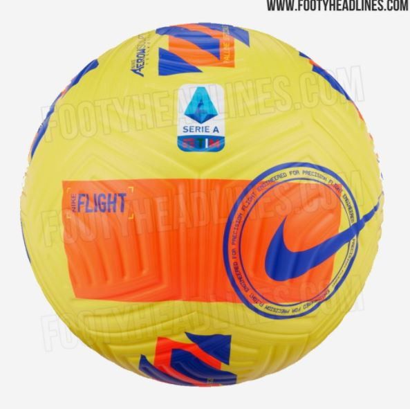 Il sito specializzato FootyHeadlines ha pubblicato le prime anticipazioni sul pallone invernale che adotterà la Serie A 2021-22: si gioca sui toni vivaci - e visibili anche col buio - del giallo e dell'arancione con il tocco blu del logo Nike.