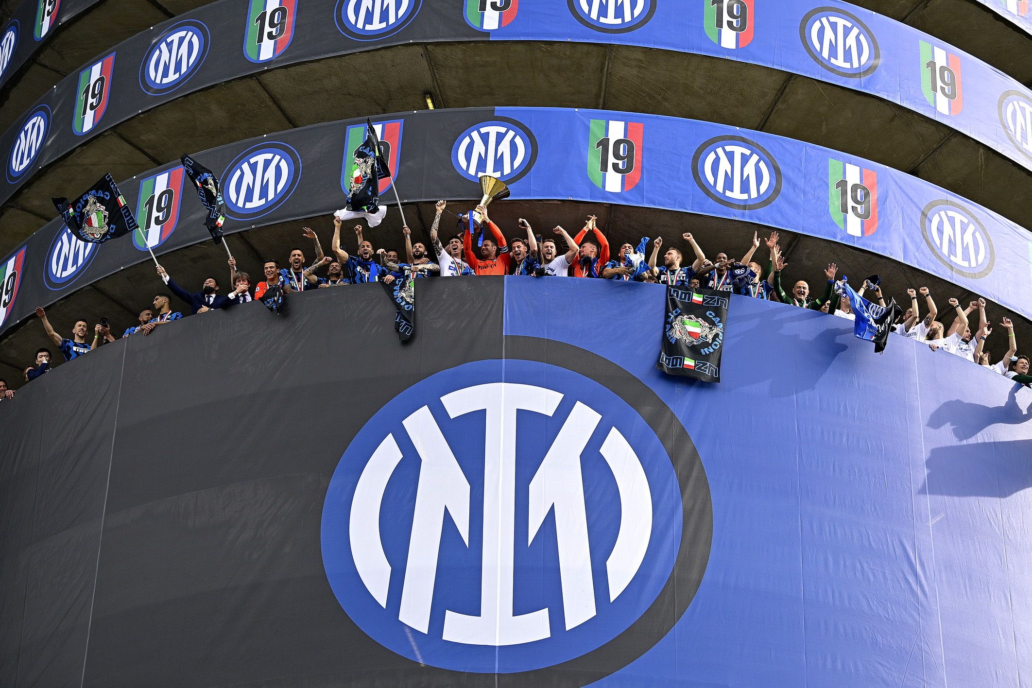 Scudetto Inter, la squadra si affaccia dalla Torre 4 di San Siro e mostra il trofeo ai tifosi