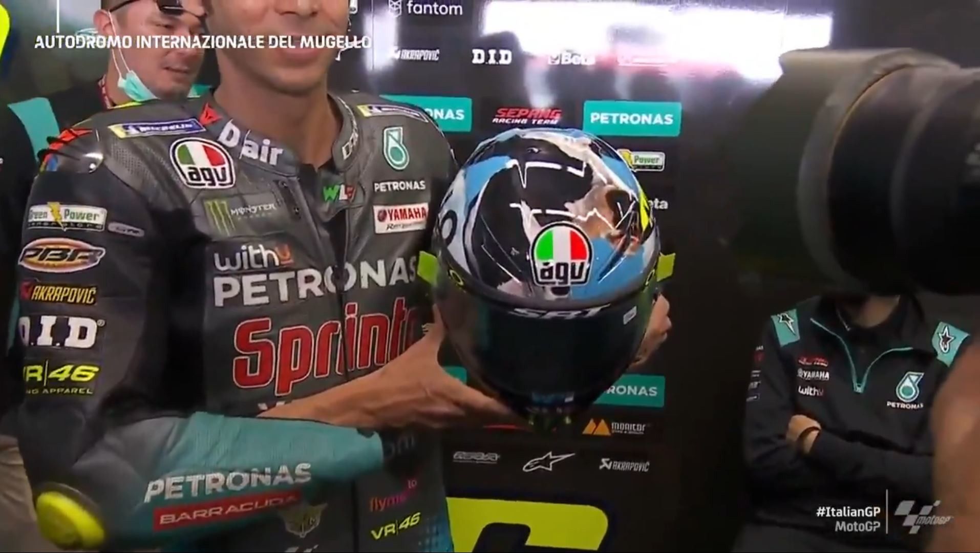 Casco speciale per Valentino Rossi in vista del GP d'Italia al Mugello. Per celebrare il ritorno sulla pista toscana il "Dottore" ha deciso di sfoggiare un casco dalla livrea inconsueta: una mucca sulla parte superiore con tanto di "Muuu... gello", con una lieve modifica al già noto "Mugiallo" usato nel 2016. Nella parte inferiore anche una citazione di una famosa canzone di Elio e le Storie Tese: "Ditemi perché se la mucca fa mu il merlo non fa me".