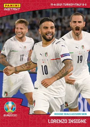 Lorenzo Insigne è il protagonista azzurro della prima “Panini Instant” dedicata a UEFA Euro 2020, dopo la vittoria della Nazionale sulla Turchia per 3-0. L’intero torneo verrà infatti seguito da Panini attraverso una serie di “Instant Card”, stampate on-demand e pubblicate dopo ogni partita, disponibili solo per 7 giorni dalla data di pubblicazione. Queste nuove card racconteranno gli eventi salienti degli Europei di Calcio, presentando tutte le partite e le squadre partecipanti in un emozionante romanzo a puntate. Questa prima “Panini Instant” ritrae il momento dell’esultanza del fantasista azzurro, inseguito dai compagni, e riporta sul retro la descrizione dell’highlight rappresentato nell’immagine, da cui emerge che il 3-0 del match inaugurale rappresenta la prima volta che l’Italia realizza tre reti in una partita agli Europei. Questa speciale card – insieme ad altre 7 dedicate, tra gli altri, alla doppietta di uno scatenato Lukaku, allo spirito di fratellanza dimostrato dai giocatori finlandesi verso il momento difficile vissuto dalla Danimarca per il malore patito da Christian Eriksen e al “rookie” da record Bellingham dell’Inghilterra – può essere acquistata solo su www.panini.it e sugli altri siti del Gruppo, a partire da oggi ed entro e non oltre le ore 16 del 21 giugno 2021. Sarà un’edizione a tiratura limitata, che verrà dichiarata da Panini sulla base delle richieste ricevute dagli appassionati entro la scadenza e anche stampata sulla stessa card. L’azienda modenese prevede di realizzare almeno una card “Panini Instant” per ogni partita del torneo, con un periodo di commercializzazione di una settimana per ciascuna. Ogni card, destinata a diventare un prezioso oggetto da conservare nel tempo, sarà contenuta in un apposito astuccio per proteggerla da graffi o pieghe.