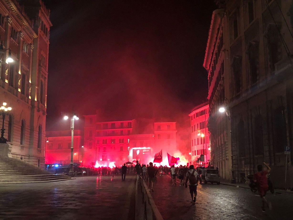 A Roma i tifosi giallorossi si sono dati appuntamento per celebrare il 94esimo compleanno del club: da sempre la società riconosce nella data del 7 giugno l'anniversario ufficiale, ma non i tifosi che continuano a festeggiare il 22 luglio. Questa volta l'appuntamento è stato a Piazza del Popolo, dove si sono radunati circa mille tifosi. Bandiere, fumogeni e qualche petardo esploso con quattro blindati della polizia a presidiare la piazza. Poi immancabili i cori contro la Lazio, come da tradizione.