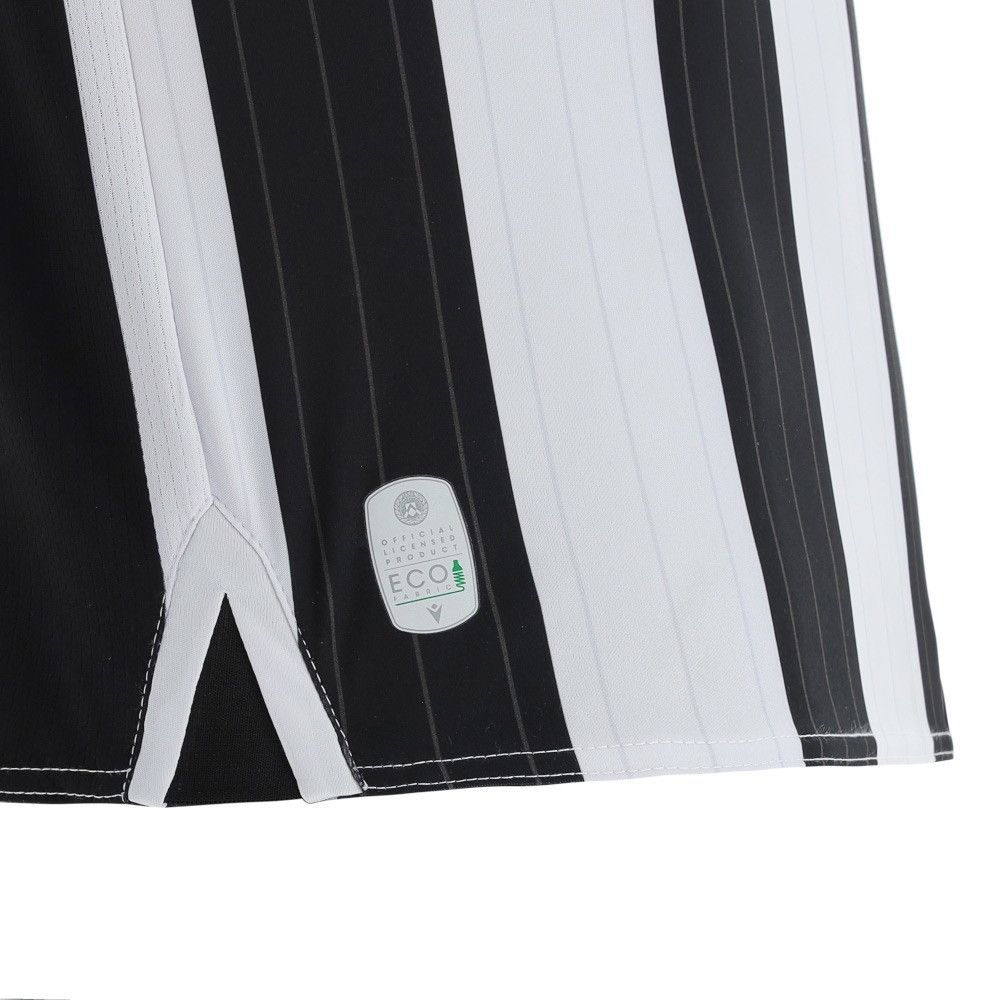 Ad un mese dalla presentazione della maglia ‘Away, l’Udinese Calcio svela, insieme Macron, the Hero company, la nuova maglia ‘Home’ che la squadra indosserà nelle partite alla Dacia Arena. La prima maglia, così come tutte le altre, oltre a portare con sé i colori e i simboli del club friulano, rappresenta l’importante scelta di sostenibilità e sensibilità nei confronti delle tematiche ambientali grazie all’utilizzo del tessuto Eco-Softlock, proveniente da plastica riciclata e certificato secondo il più importante standard internazionale per la produzione sostenibile di indumenti e prodotti tessili il Global Recycled Standard.La nuova ‘Home’ dell’Udinese Calcio si conferma nella tradizionale configurazione a bande verticali bianconere impreziosite, in questa versione 2021-2022, da un elegante gessato in stampa sublimatica, tono su tono. La maglia ha il colletto a polo nero e il backneck è personalizzato con il logo del club su fondo nero e la scritta 125 ANNI DI PASSIONE, mentre nel retrocollo esterno è ricamata in bianco la frase La Passione è la nostra Forza. Sul retro della maglia spicca il quadrato nero su cui compaiono nome e numero dei calciatori richiamando lo stile tipico delle maglie classiche degli anni 70 e 80.