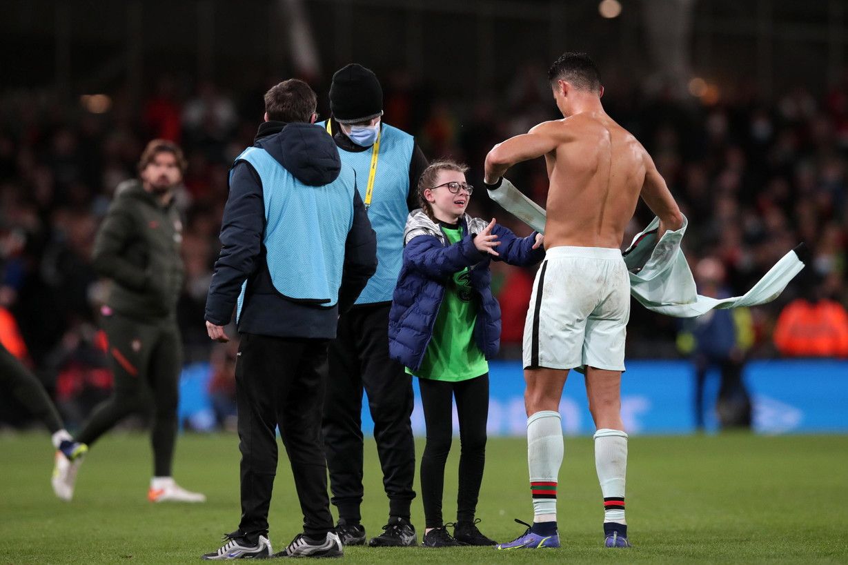 Irlanda-Portogallo: piccola tifosa invade il campo, Ronaldo la abbraccia e le regala la maglia