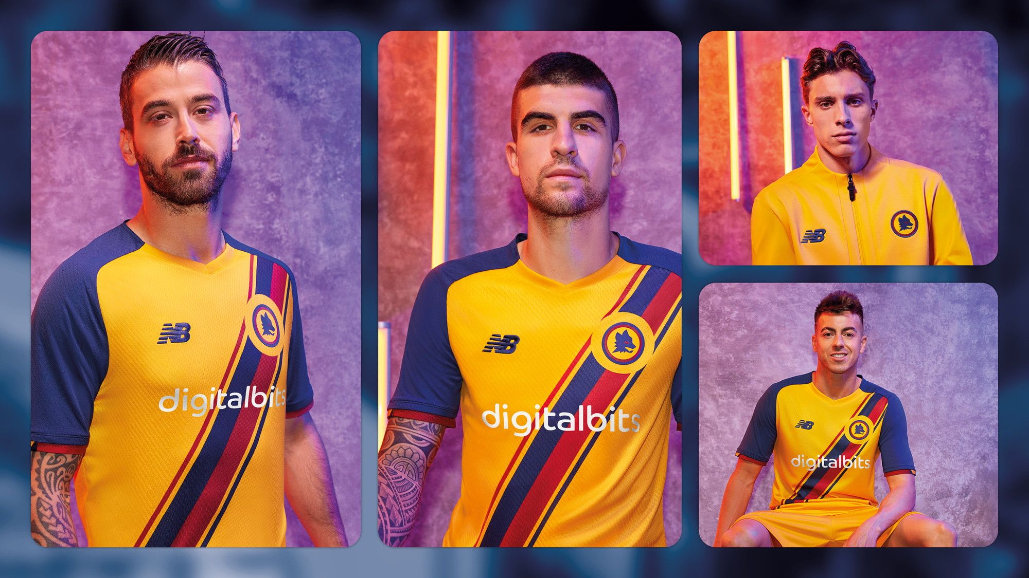 La Roma e New Balance hanno svelato la nuova terza maglia della stagione. La maglia viene presentata in un sorprendente color oro, sinonimo dei giallorossi. Una straordinaria fascia blu navy e rosso intenso scorre diagonalmente dalla spalla, incorniciando il petto fino ad arrivare all’orlo della maglia. Il retro include una “body map” ingegnerizzata traspirante per l’assorbimento dell’umidità. Il kit viene completato da short e calzini in tonalità coordinate. Divisa che ricorda molto quella del Barcellona.