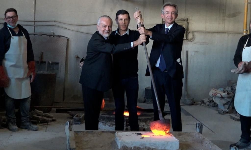 Maradona, la statua è pronta: ultima colata davanti a De Laurentiis e al sindaco