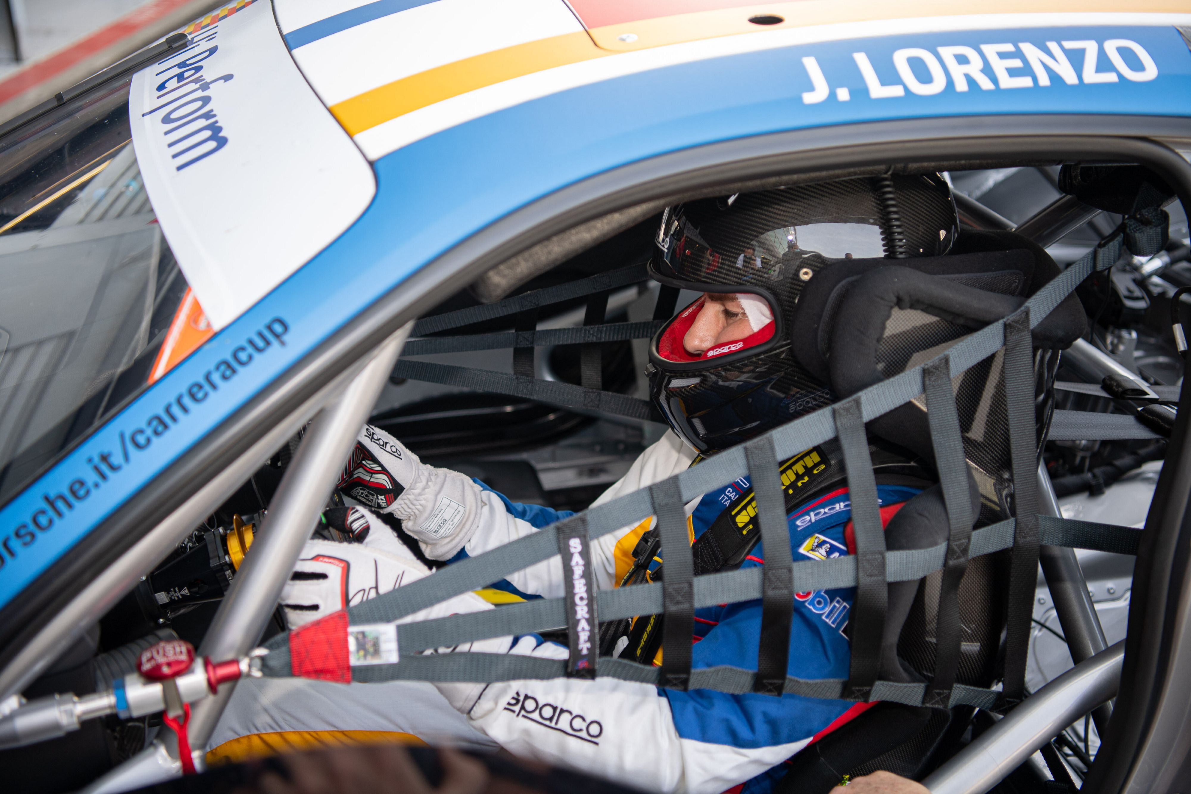 Jorge Lorenzo in pista a Monza con la Porsche della Carrera Cup Italia