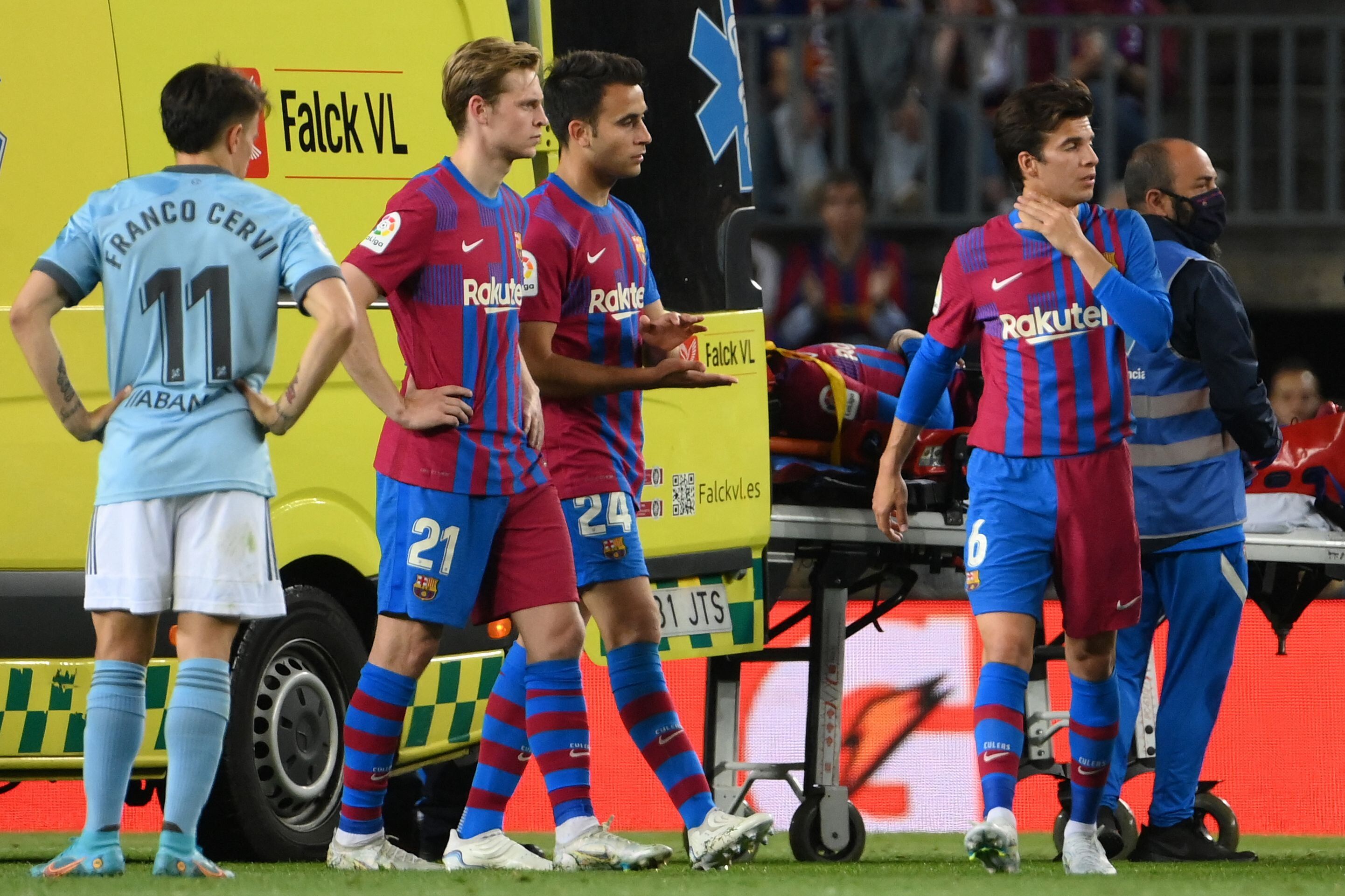 Scontro di gioco con il compagno Gavi nel corso del match contro il Celta Vigo