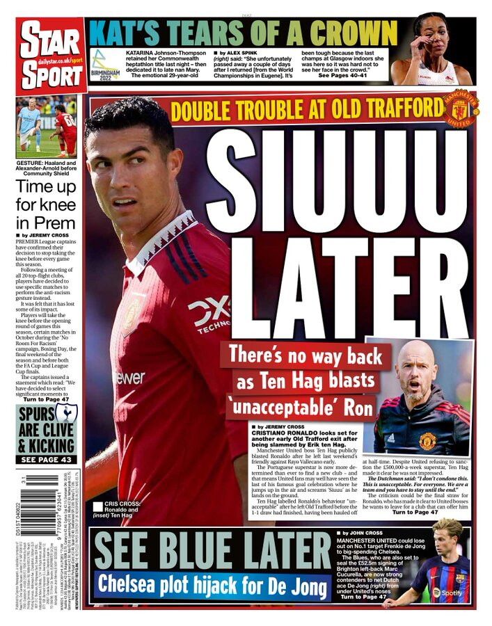 United, dopo Ten Hag anche i media scaricano CR7: "Siuuu later"