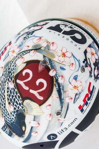Yuki Tsunoda ha scelto la carpa come simbolo del Giappone da mettere sul casco per il proprio GP di casa a Suzuka.