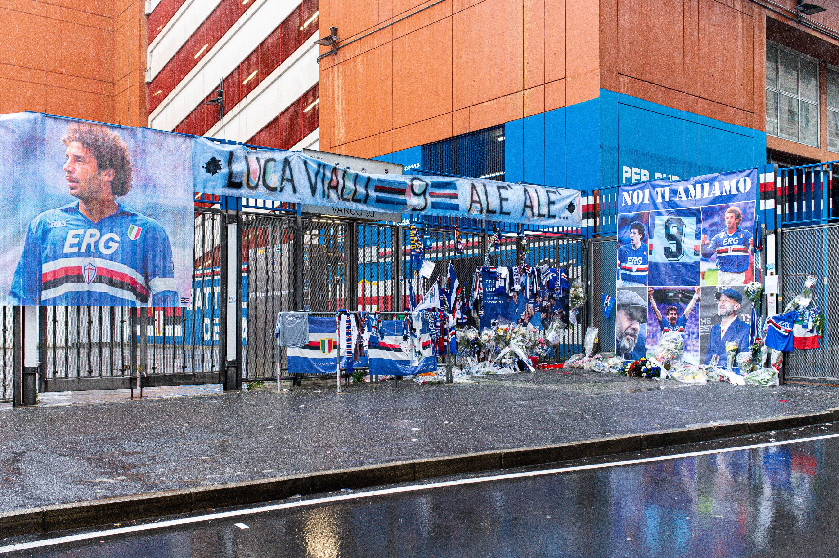 Vialli: fiori, striscioni e immagini per omaggiarlo a Marassi