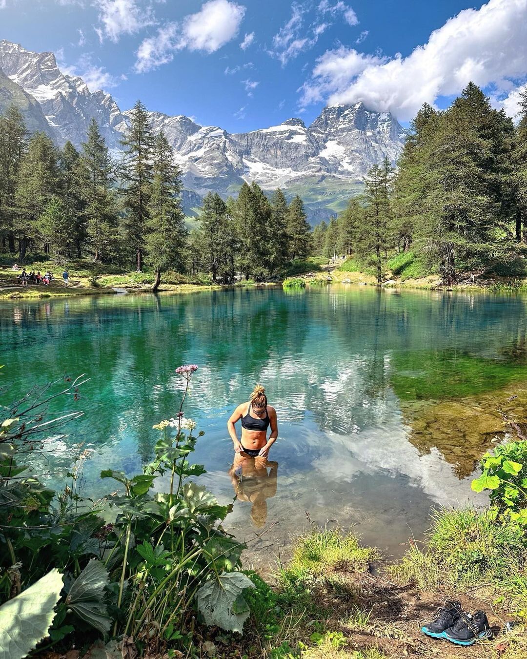 Sofia Goggia a Cervinia: sci e bagno nel lago